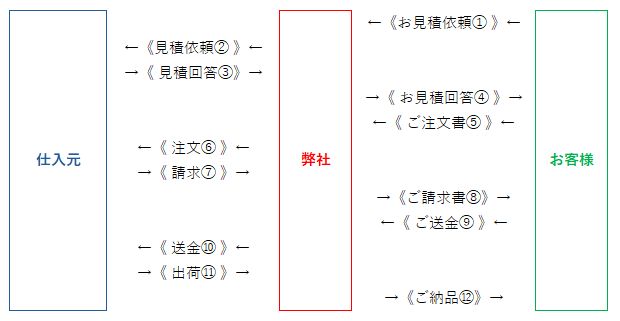 そのため見積回答の時点《 見積回答③ 》で部品があっても、ご注文《 ご注文書⑤ 》をしたときに他に売られてしまうことがあります。
